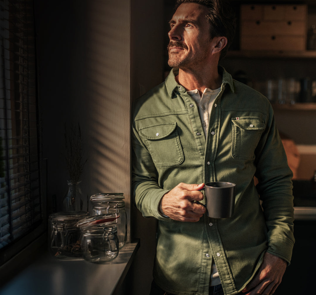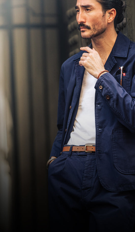 Step inside &SONS. With stores in London and Cheltenham, this is where our garments come to life. You’ll find timeless menswear, up close—crafted to be worn, lived in, and passed down.