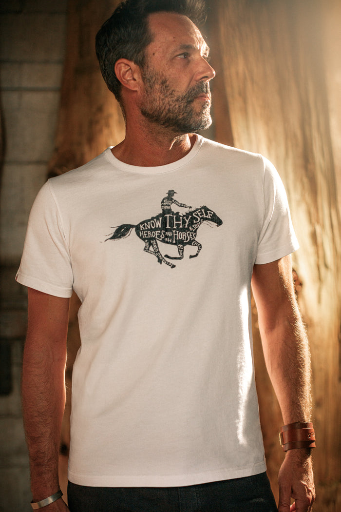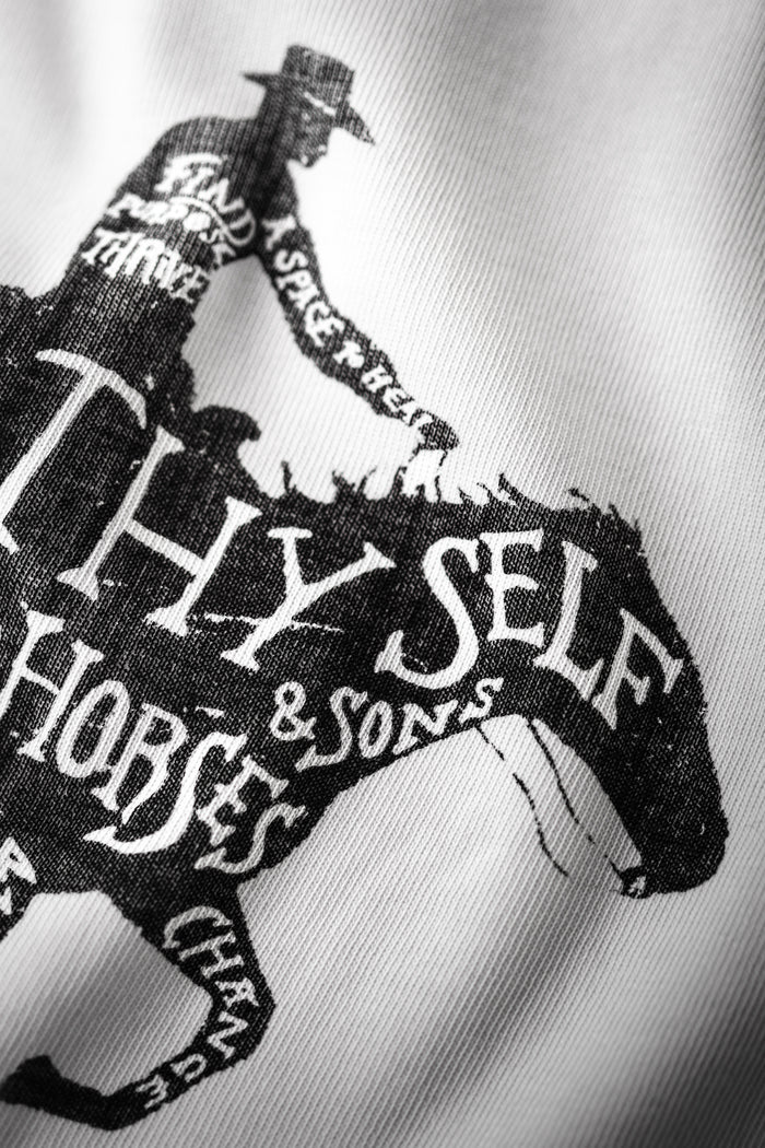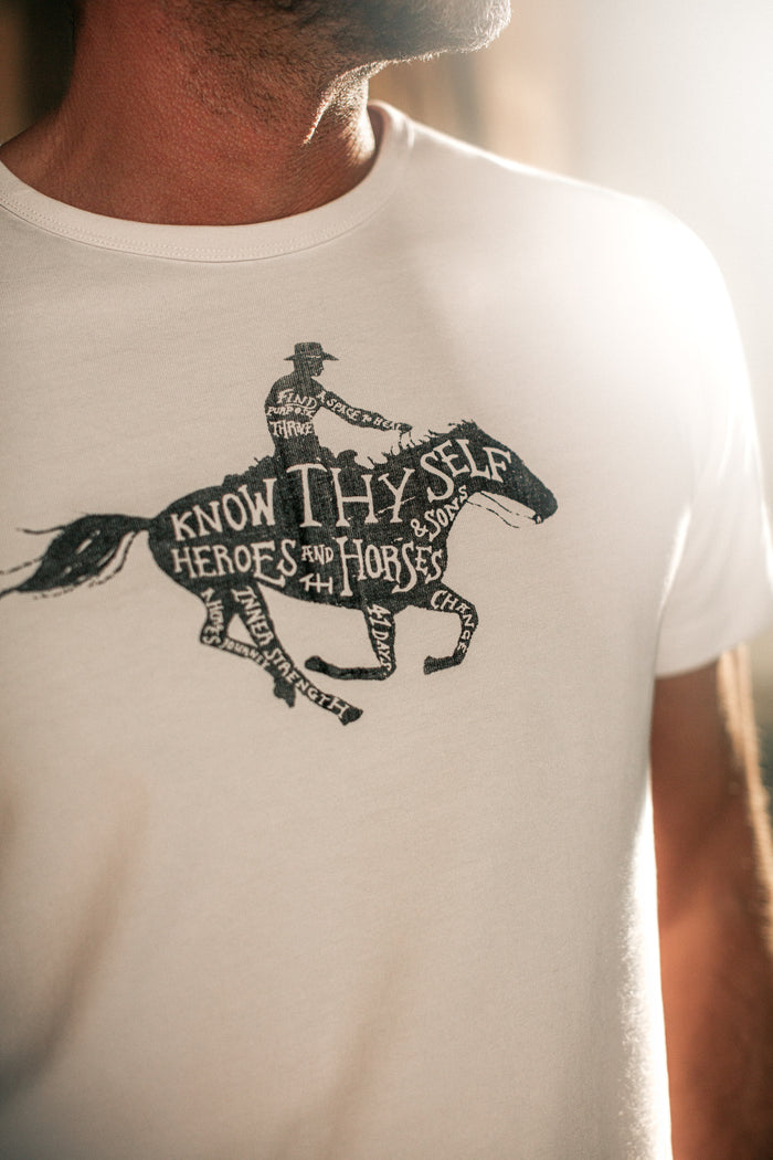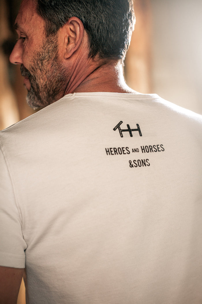 To further our commitment to men’s mental health, we’ve designed a limited edition tee, hand screen-printed right here in our studio. All profits from the sale of this tee will go directly to Heroes and Horses, supporting their life-changing work and our ongoing mission to break the stigma around men’s mental health.