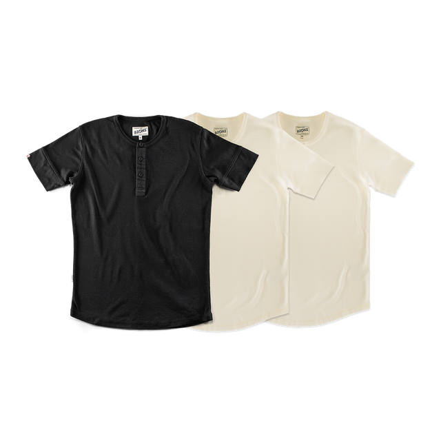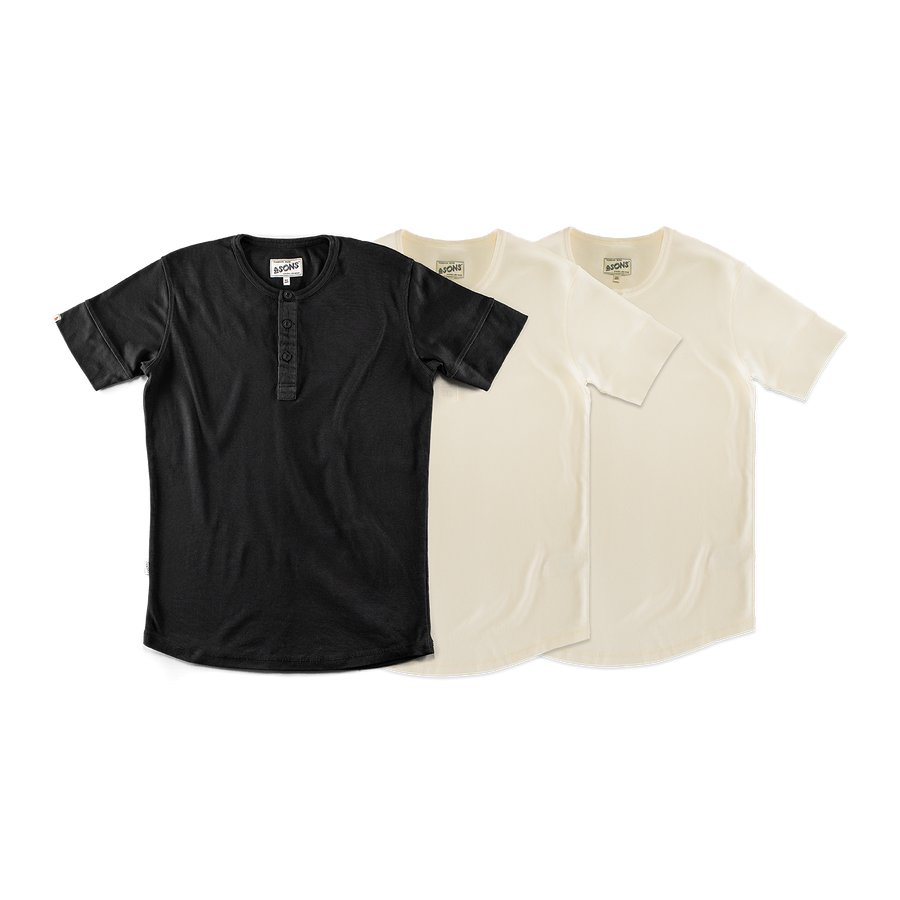 Elder Henley Short Sleeve 3 Pack – x2 Raw / 1x Black