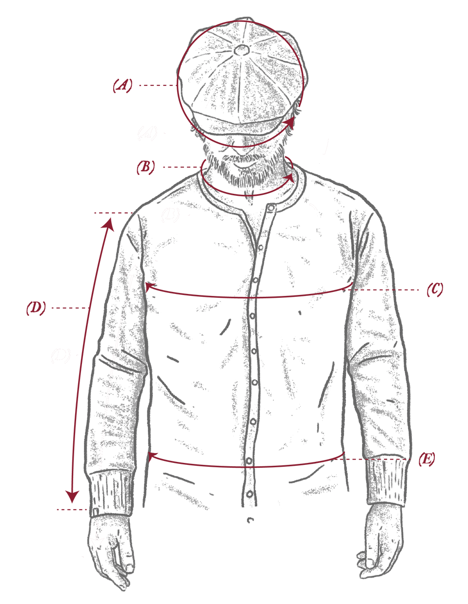 | Chest (C) | 91 - 97 cm | 99 - 104 cm | 106 - 112 cm | 114 - 122 cm | 124 - 129.5 cm |
