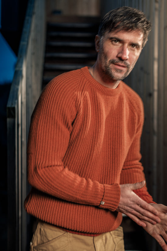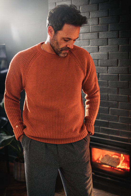&SONS Abel Ribbed Crew Neck Burnt Orange
