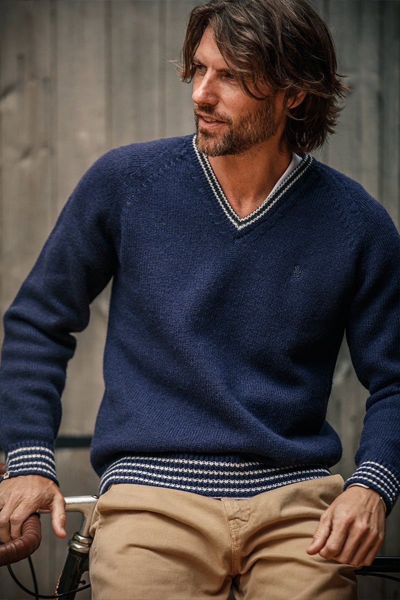 &SONS Old School V-Neck Jumper Navy